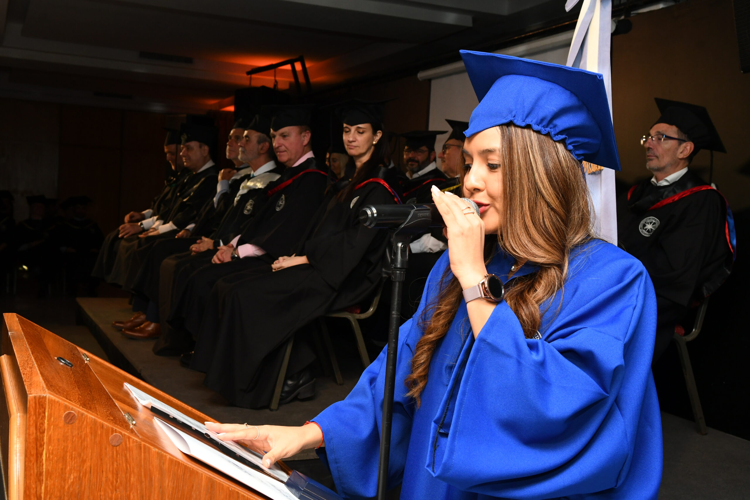 En este importante evento se distinguió a la Abanderada, Rocío Aldana Méndez, egresada de la carrera de Ingeniería en Sistemas, quien obtuvo un promedio de 8,8, merecedora de la Medalla de Plata.