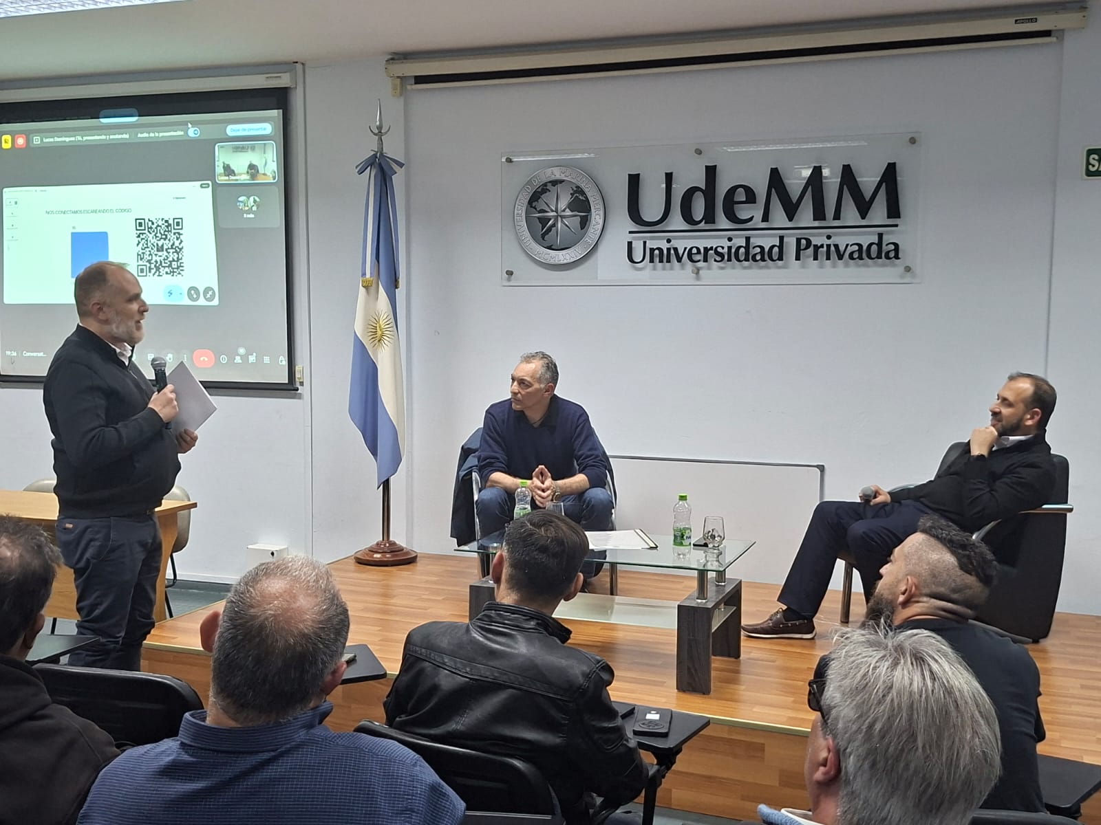 Durante el encuentro participaron estudiantes y trabajadores del sector. La moderación estuvo a cargo del Lic. Marcelo Berlato, Director de la carrera de Comunicación y Escritura Creativa. También participó el Dr. Walter Vázquez Fiel, Secretario Académico de la Facultad de Ciencias Jurídicas, Sociales y de la Comunicación; y Mg. Claudio Sentana, Secretario de Extensión Universitaria.