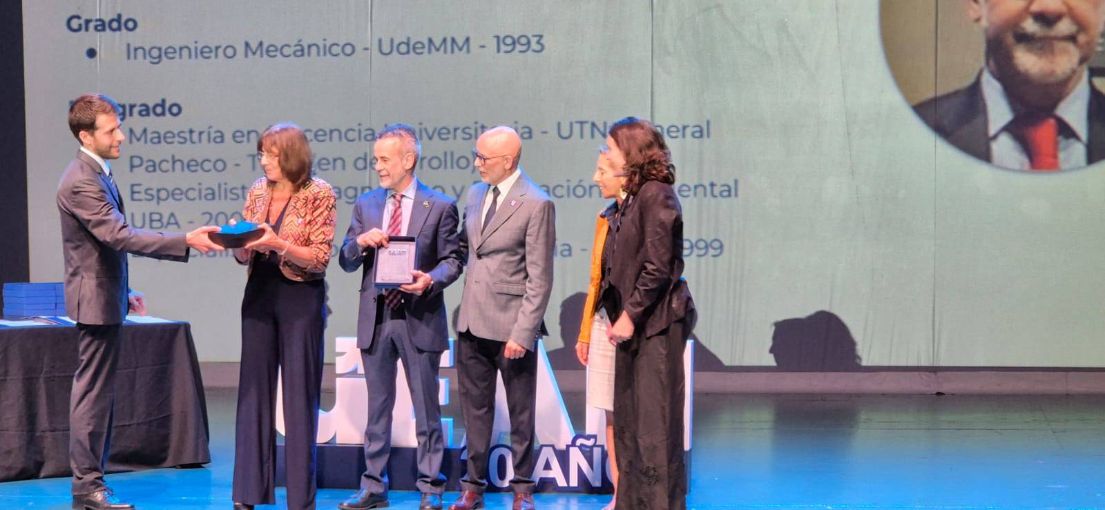 El reconocimiento se materializó con la entrega de una placa conmemorativa durante un emotivo acto. El encargado de formalizar este tributo fue el rector de nuestra casa de estudios y presidente de ACINNET, el Ing. Luis Franchi.